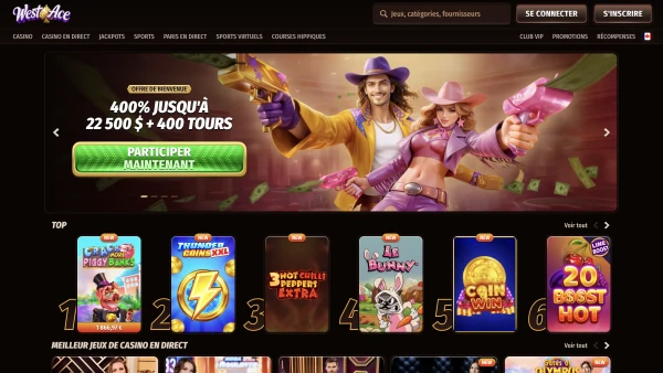 Westace a été lancé en 2024 et conçu pour les joueurs qui veulent un casino moderne avec des offres claires, un immense lobby de jeux et des options de paiement simples en CAD. Chez Casino Westace, nous mettons l’accent sur un accès facile aux machines à sous, tables en direct, jackpots et paris sportifs, le tout avec un seul compte. Notre plateforme prend en charge des moyens de paiement canadiens comme Interac, Skrill, Neteller, PaysafeCard et les cryptomonnaies, ce qui rend les opérations bancaires au quotidien pratiques pour les utilisateurs locaux.